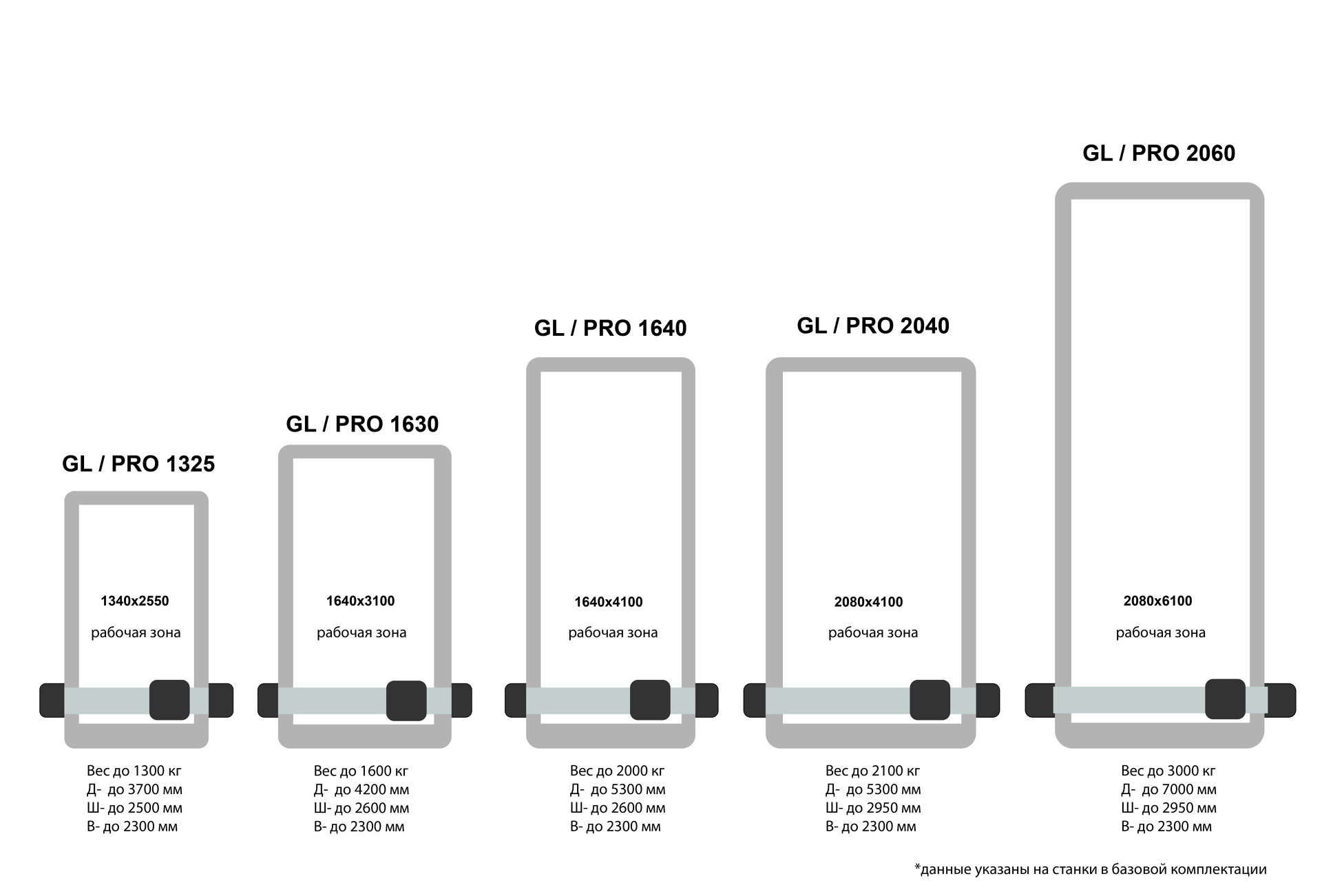1340х2550 мм 1640х4100 мм 2080х4100 мм 2080х6100 мм |